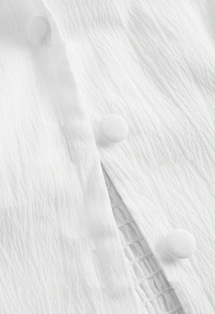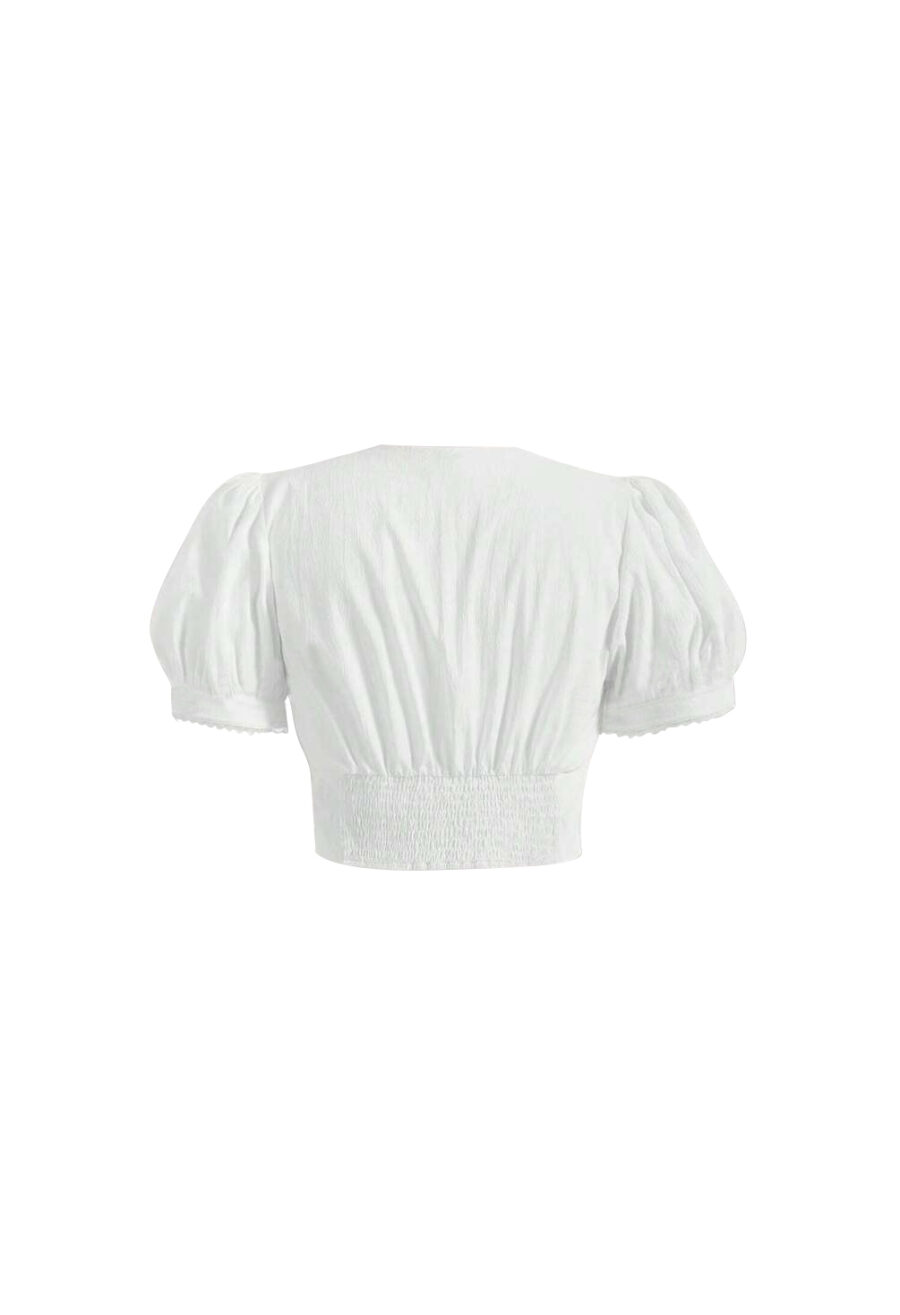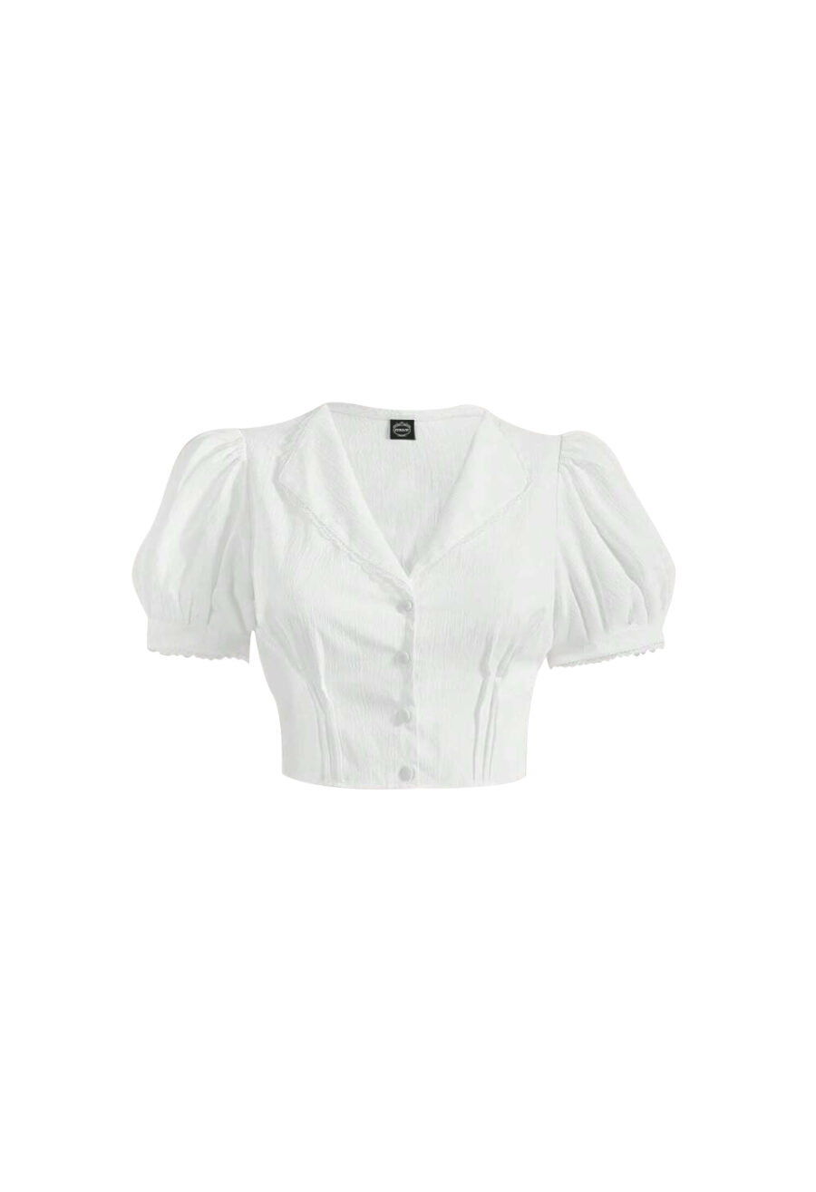 Zekbay Beautiful White Puff Sleeve Waterfall Collar Short Crop Top