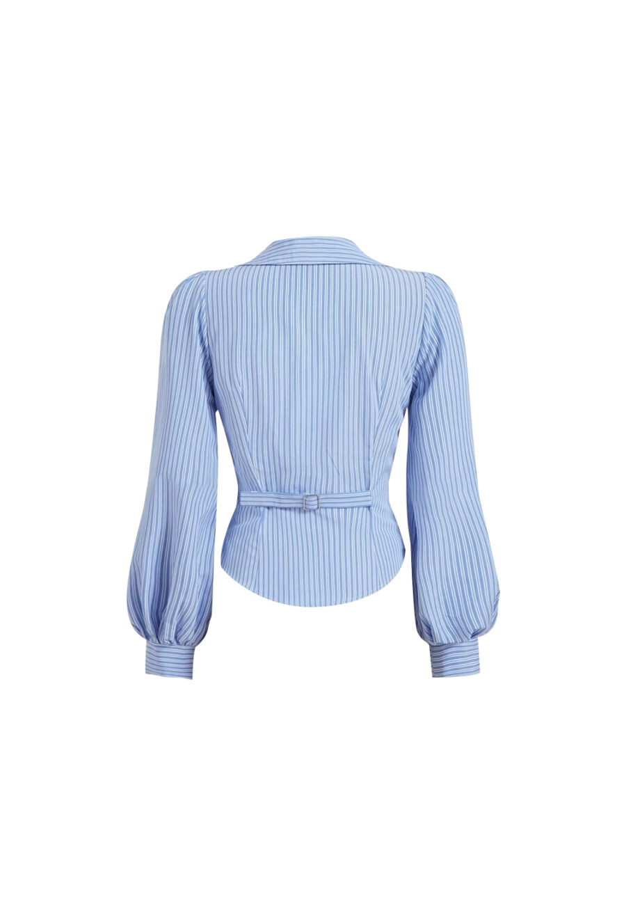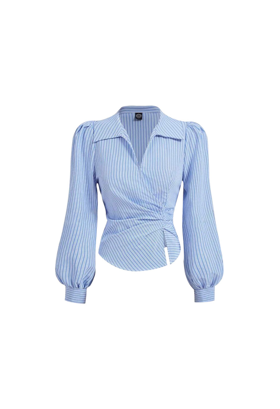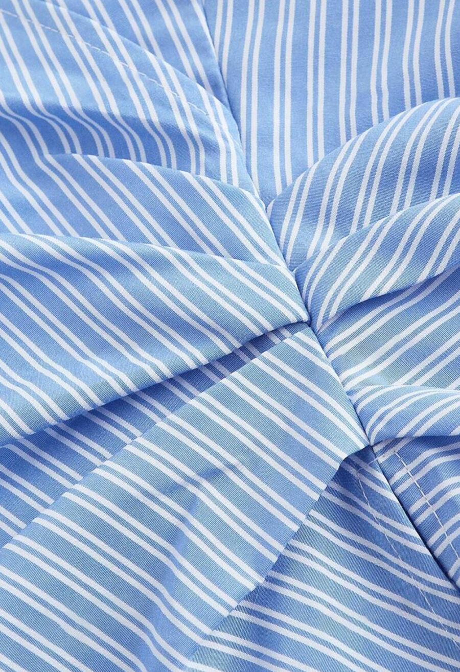 Zekbay Fashionable Blue Striped Tie-Front Long Sleeves For Women