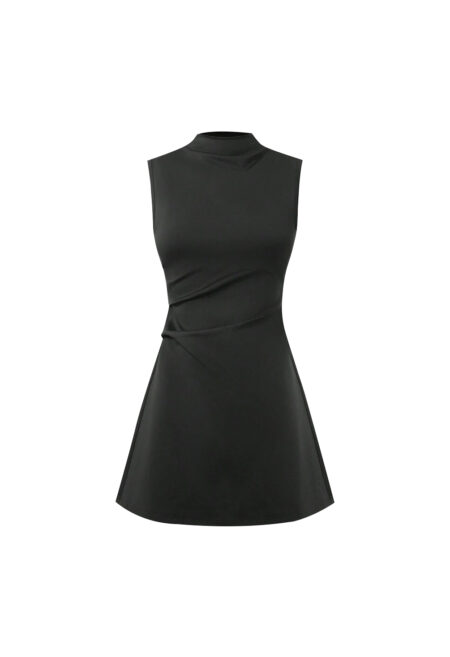• Neckline: High neck. • Style: Casual. • Type: A-Line. • Waist: High waist. • Hem Shape: Flared. • Color: Solid black. • Fit: Slim fit. • Fabric Stretch: High stretch fabric. • Material: 97% polyester, 3% cotton blend. • Length: Short length. • Care Instructions: Machine wash or professional […]