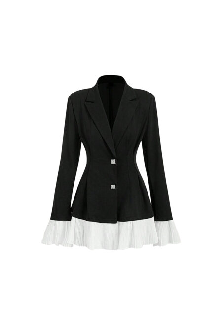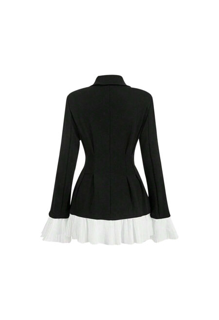 • Design Details: Pleats and Peter Pan collar. • Neckline: Western-style collar. • Sleeve Type: Regular long sleeves. • Style: Elegant. • Type: Regular fit. • Hem Shape: Flared hem. • Color: Black with color block pattern. • Fit: Slim fit. • Fabric Stretch: Medium stretch fabric. • Material: 95% […]