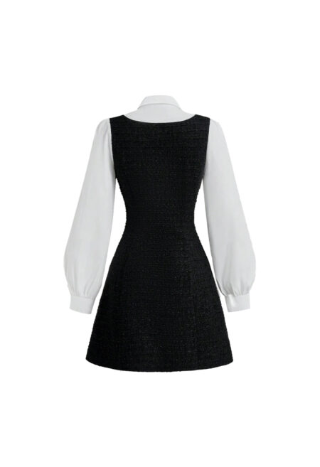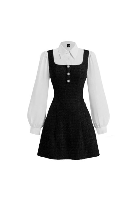 • Design Details: Pearl accents, buttons, and a zipper closure. • Neckline: Round neck. • Sleeve Type: Long lantern sleeves. • Style: Elegant. • Type: A-line. • Waist: High waist. • Hem Shape: Flared. • Color: Black and white color block. • Fit: Regular fit. • Fabric Stretch: Medium stretch […]