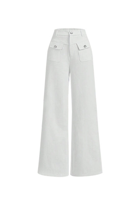 • Closure Type: Integrated zipper. • Design Details: Features button and pocket accents. • Style: Casual. • Color: Solid white. • Type: Straight leg pants. • Waist: High waist. • Length: Full length. • Fit: Regular fit. • Material: 100% polyester. • Fabric Stretch: Non-stretch fabric. • Lining: No lining. […]